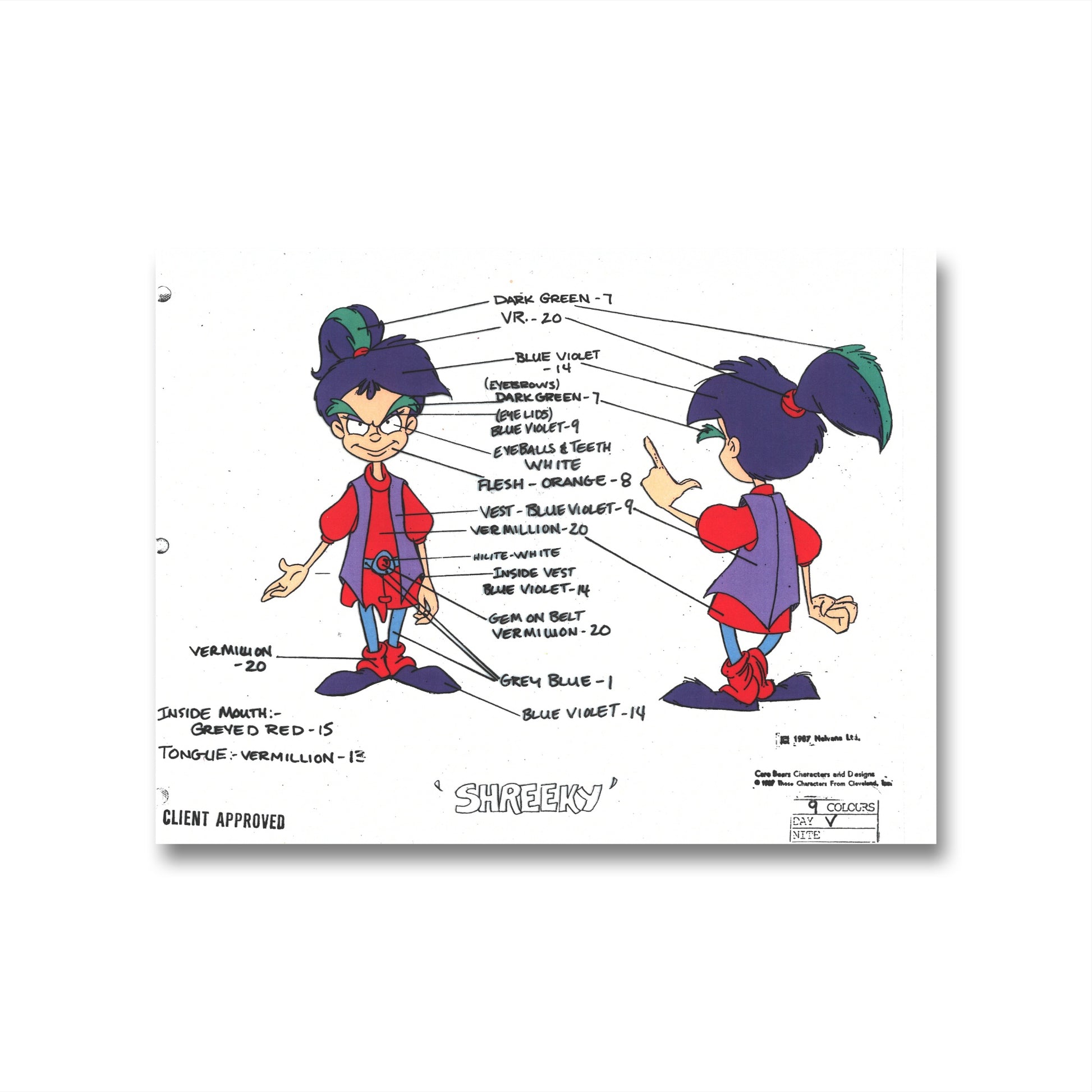 Own a piece of animation history with this exclusive Shreeky Model Sheet from 'The Care Bears Series' Add it to your collection today!